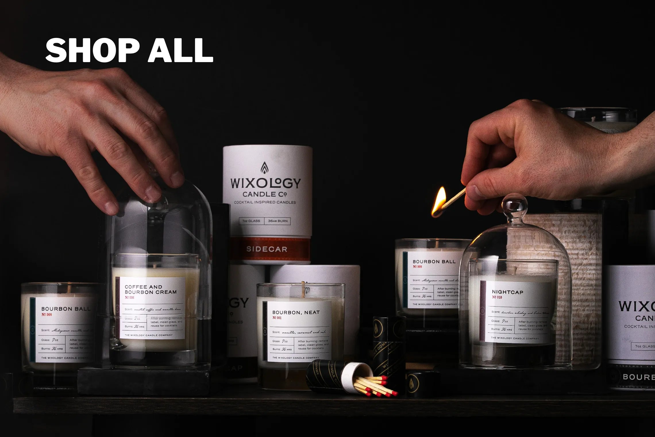 All of our candles are poured into premium glassware and paired with a cocktail recipe that matches the scent.