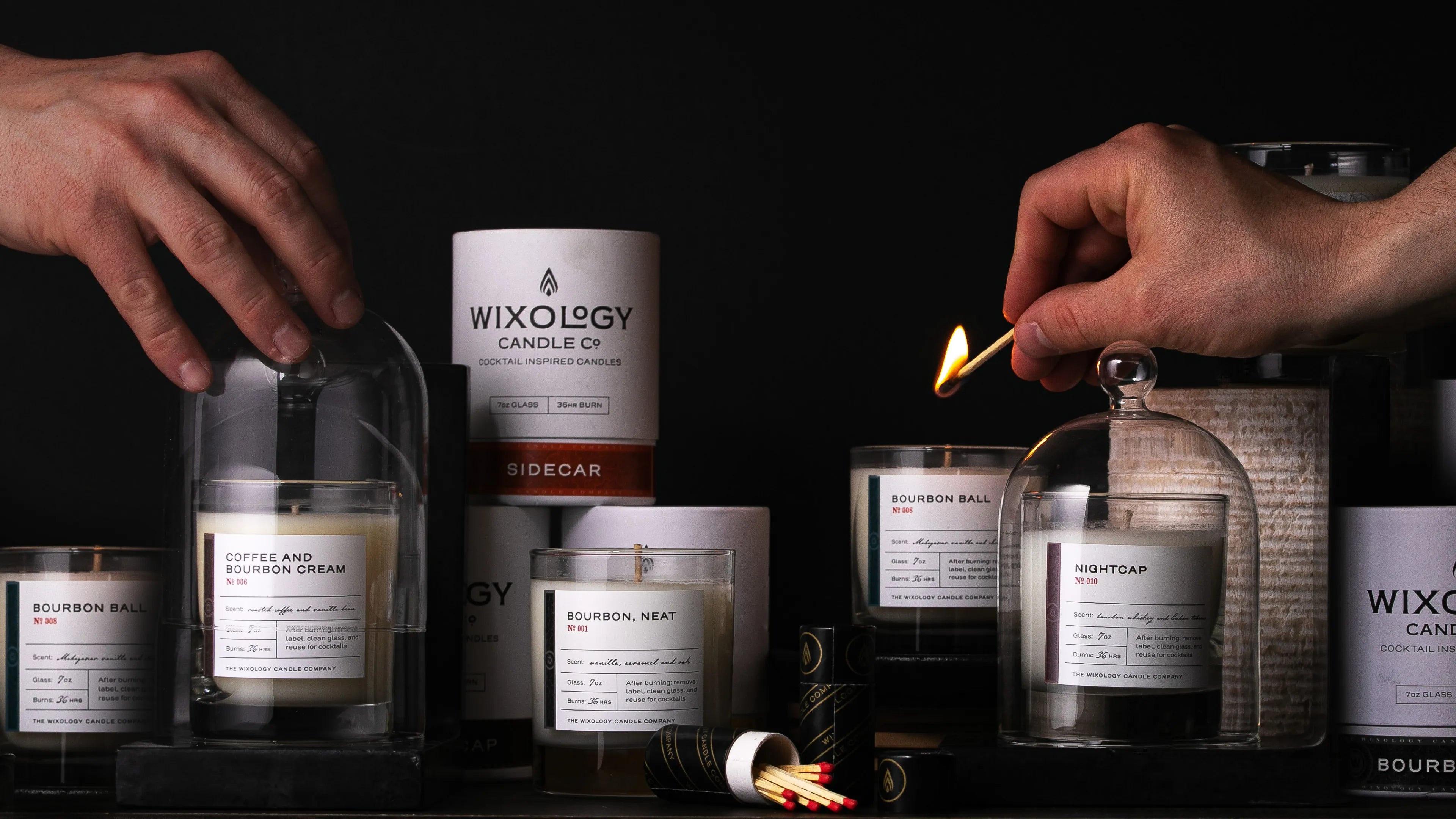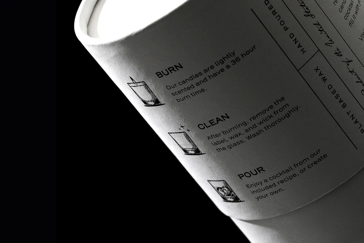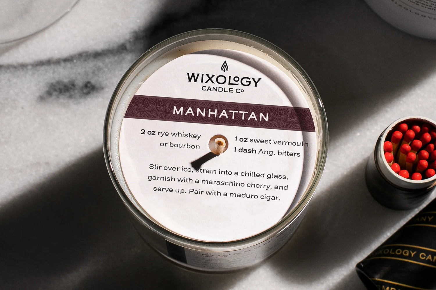 All of our candles are poured into premium glassware and paired with a cocktail recipe that matches the scent.